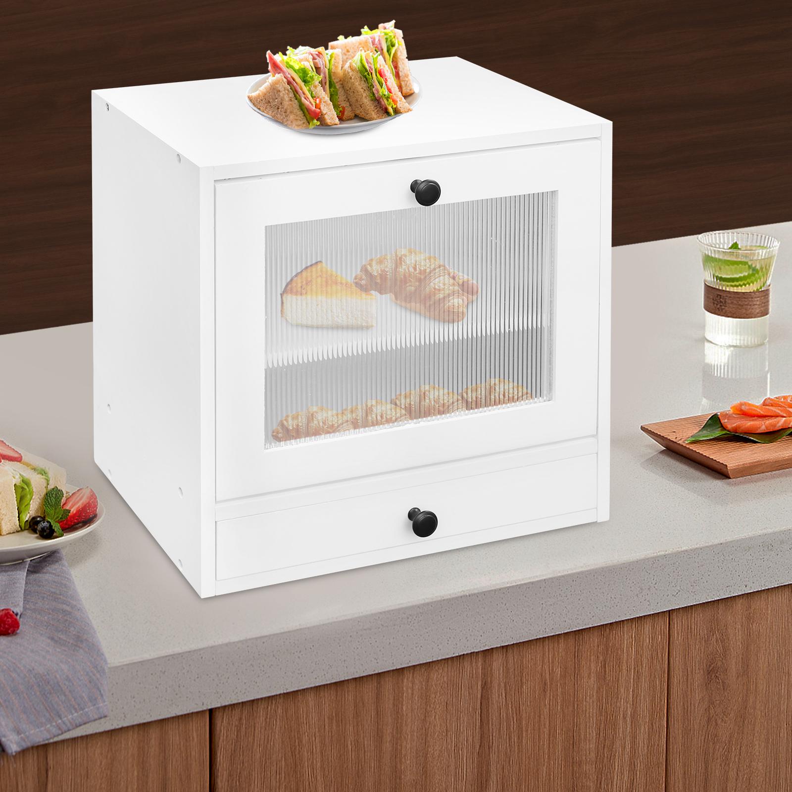 Weißkiefernholz Brotaufbewahrung, 2-lagiger rechteckiger hölzerner Brotkasten zur Aufbewahrung von Brot, Tischplatte für Küchentheken-Ecken weiß