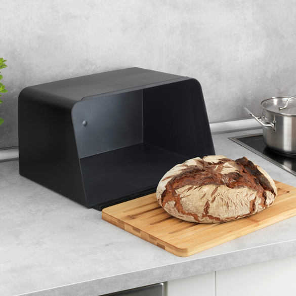 Brotkasten KESPER "Brotbox", schwarz, B:31cm H:18,5cm, Lebensmittelaufbewahrungsbehälter, Brotkasten, Deckel als Schneidebrett verwendbar