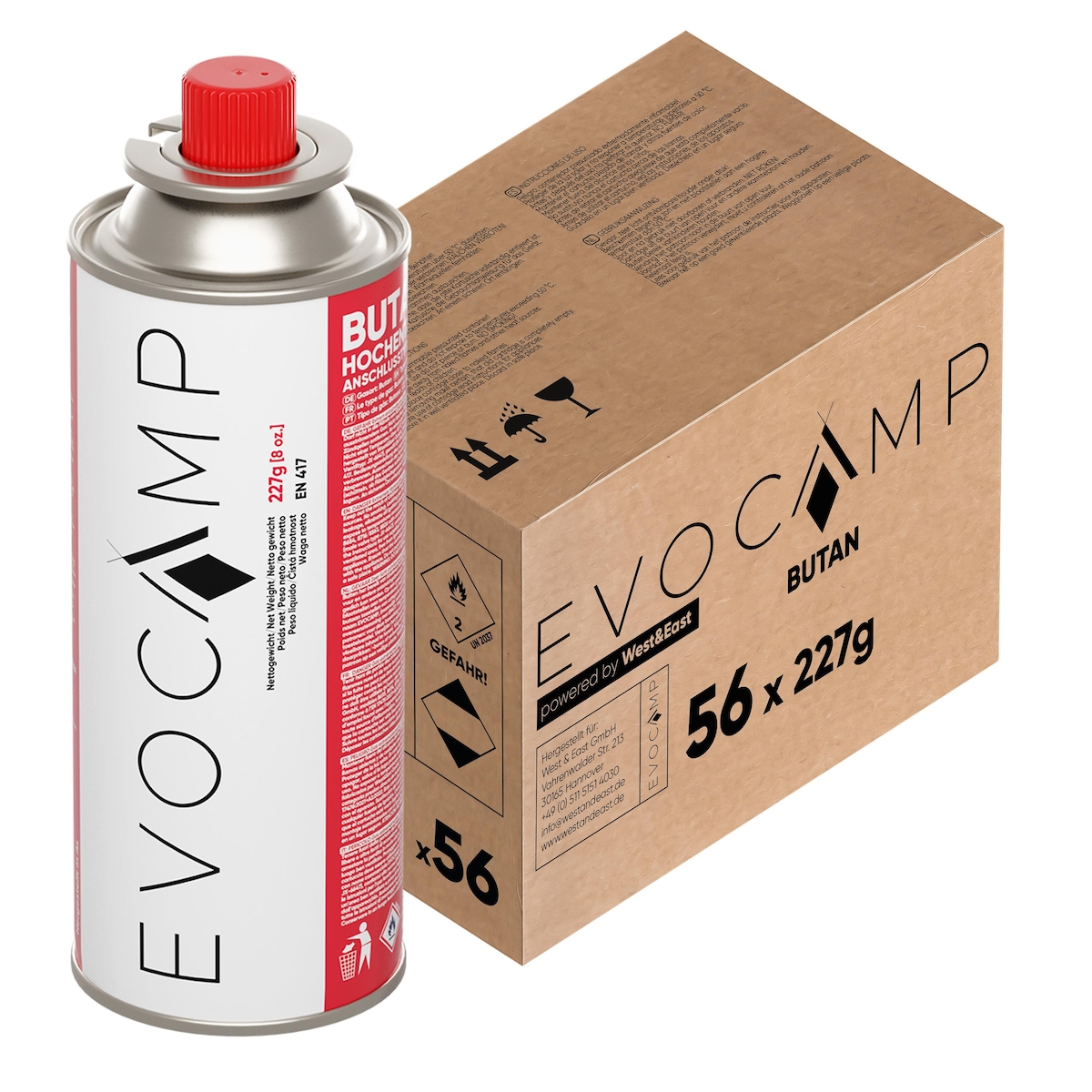 EVOCAMP 56 Stück Gaskartuschen 227g Butangas