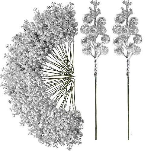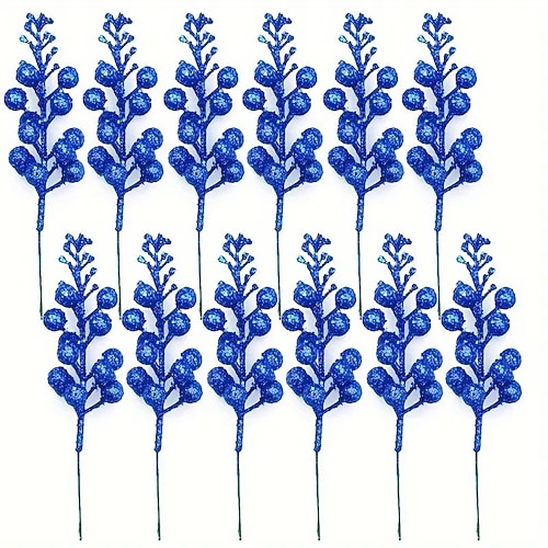 12 steli di bacche natalizie, rami di poinsettia dorati glitterati con bacche e foglie, eleganti fiori di plastica per albero di Natale, ghirlande, feste e decorazioni per la casa