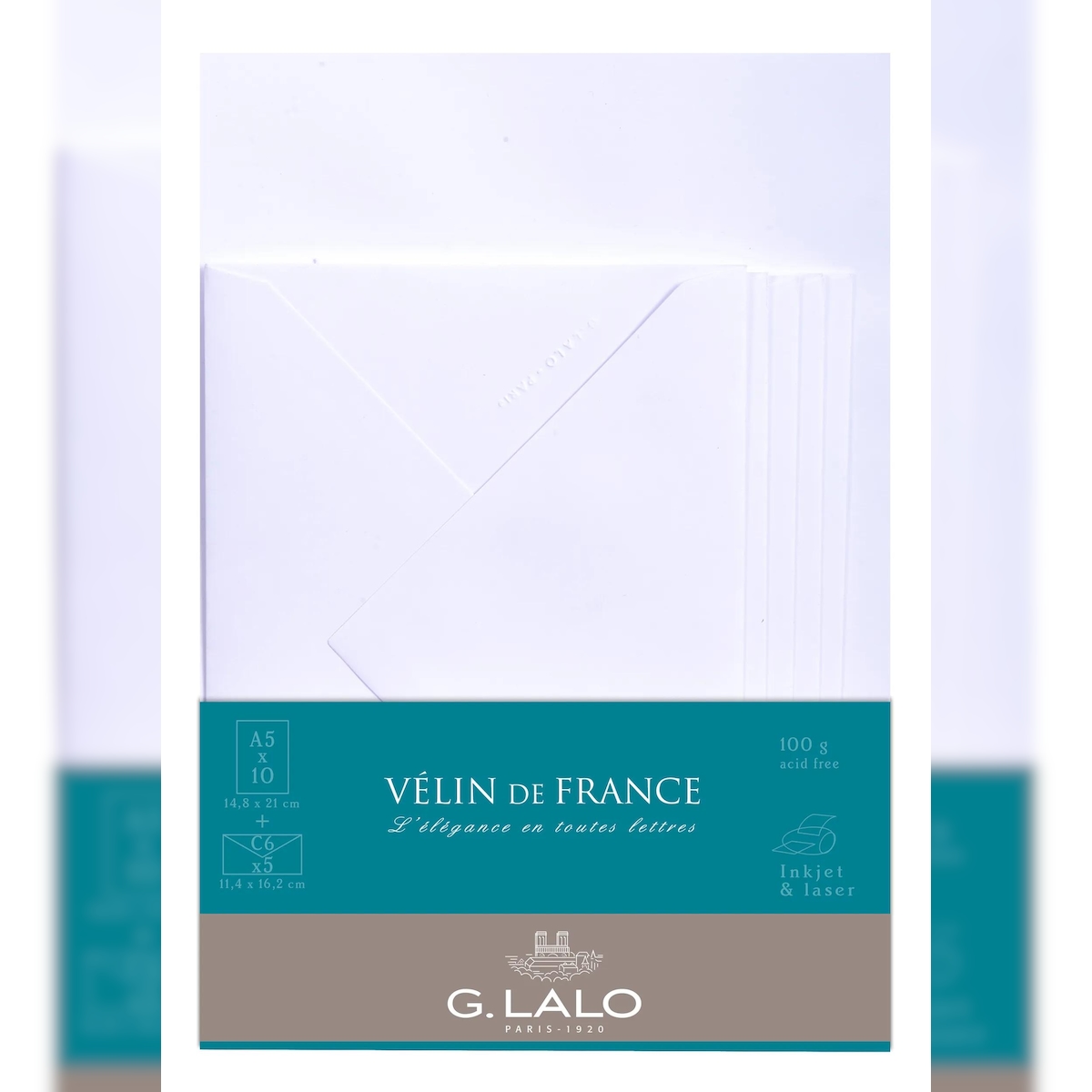 G.Lalo 5x Lalo, Korrespondenzset, 10 Blatt A5 und 5 Umschläge C6, Vélin de France - Weiß 61700L