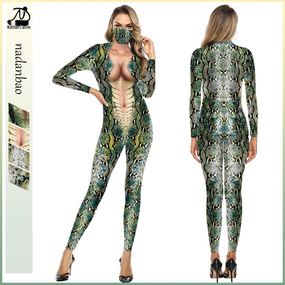 3D Animal Snakeskin Print Jumpsuit Onesie - Couple's Long Sleeve Set cm