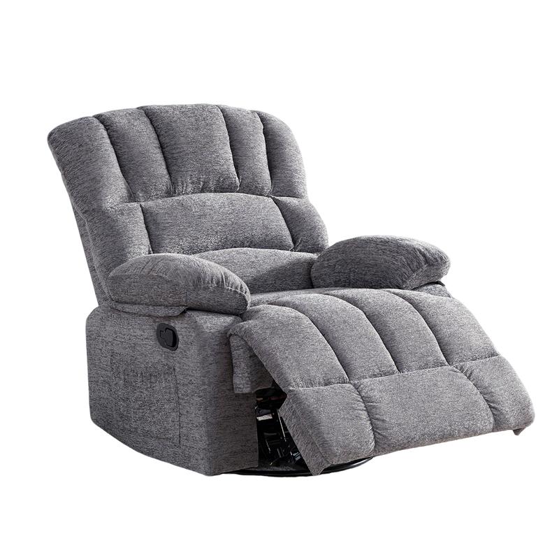 HONEYOU Swivel Recliner Chair, OKIN Frame Recliner, Oversized 360° Rocker Chairs, Rocking Recliner Chair, Overstuffed Manual Glider Recliner, Single Sofa for Living Room, Bedroom,Gray