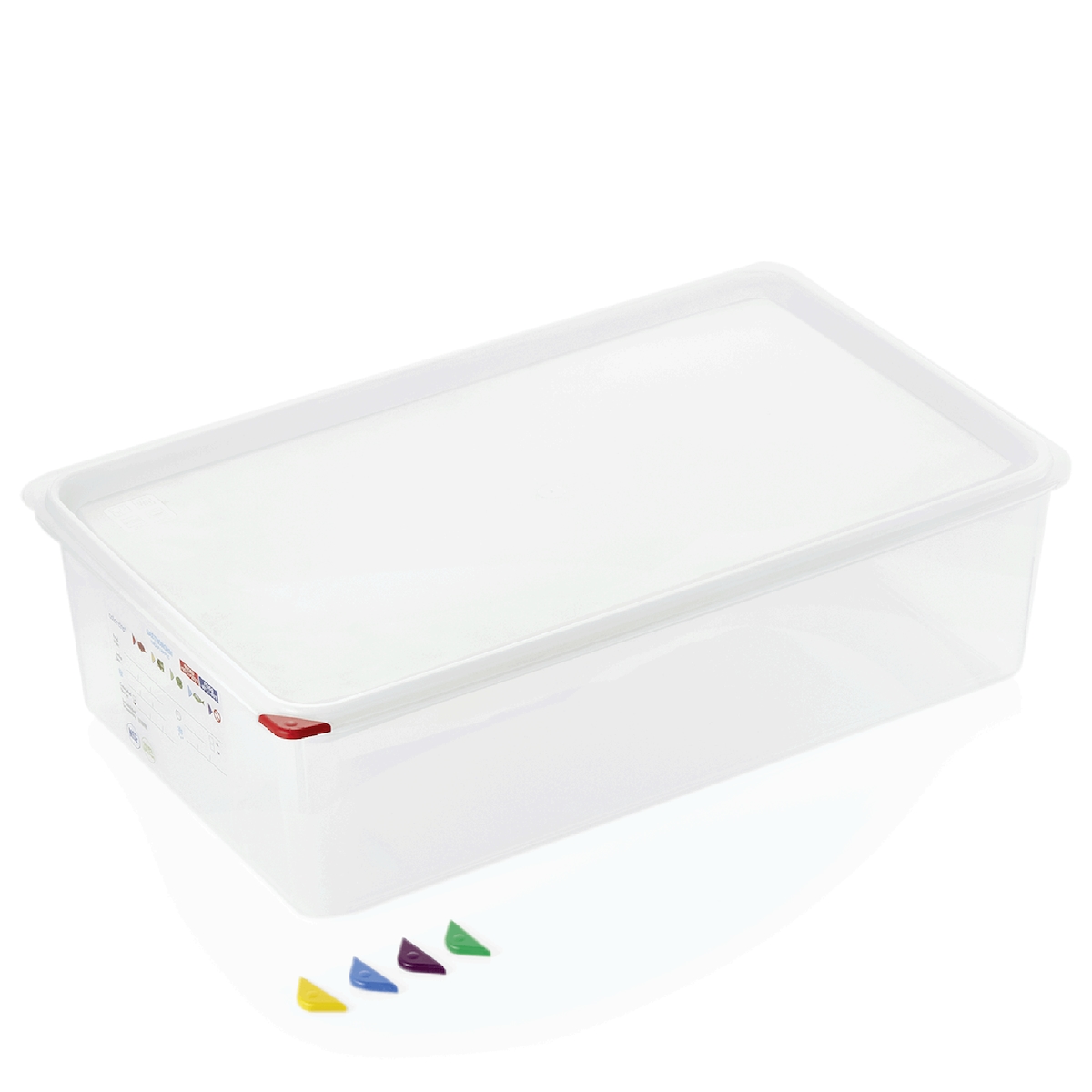 WAS Germany - GN Behälter Set GN 86 1/1-150 mm, mit Deckel, mit rotem Clip, Set á 6 Stück, Polypropylen