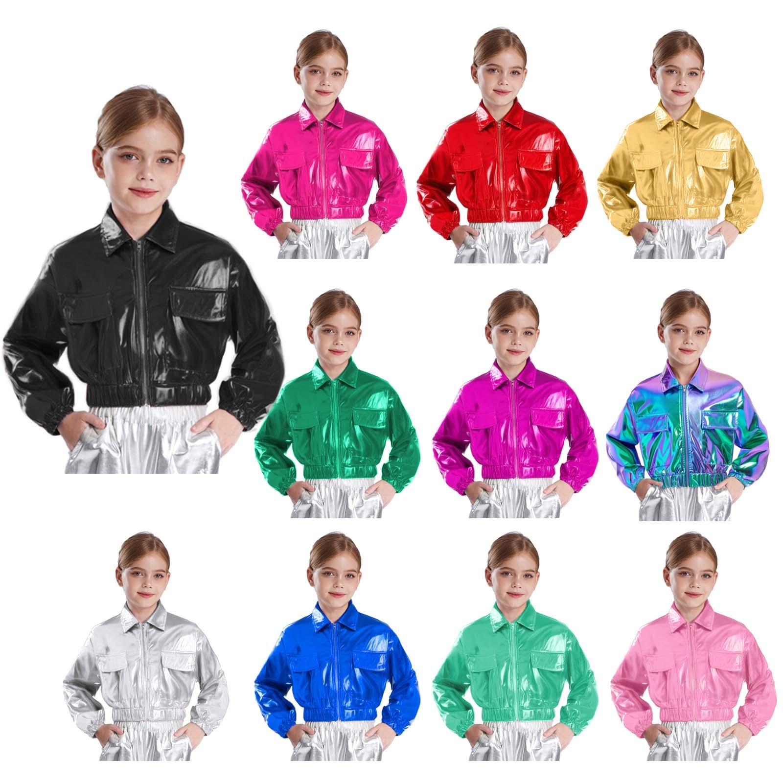 Barn Gutter Jenter Metallisk Skinnende Jakke for Hip-Hop Jazzdans Topper Langermet Klafflommer Yttertøy Danseforestillingskostymer cm gull