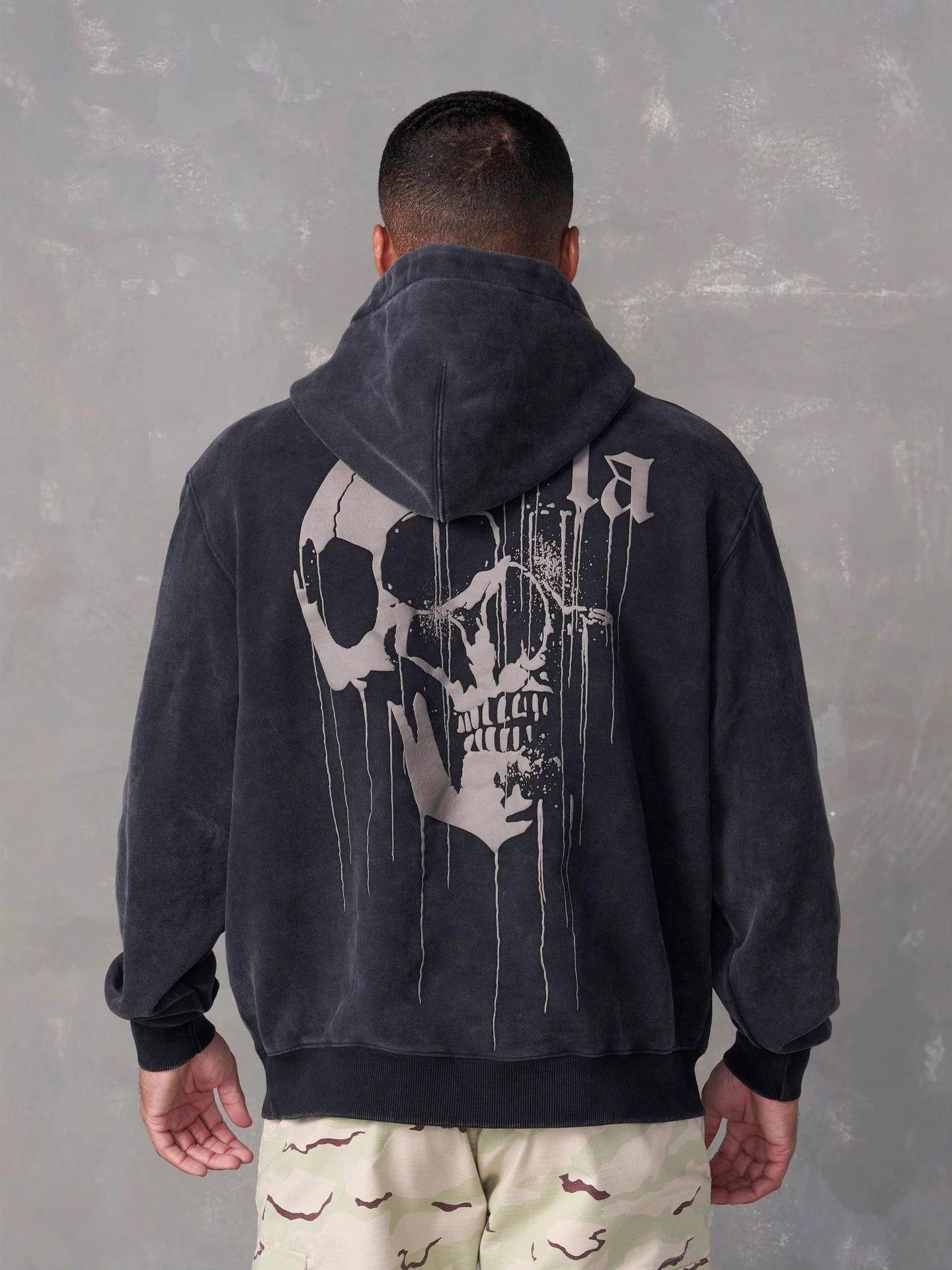 YoungLA Men's Skull Print Autumn/Winter Cotton Hoodie cm dark gray