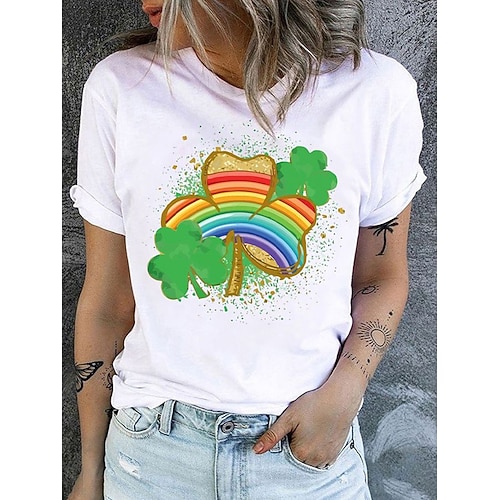 Maglietta Donna St. Patrick's Day Shamrock Casual Manica Corta Collo Rotondo Regolare Tops St. Patrick's Day Stampa Quotidiana Bianco Estate