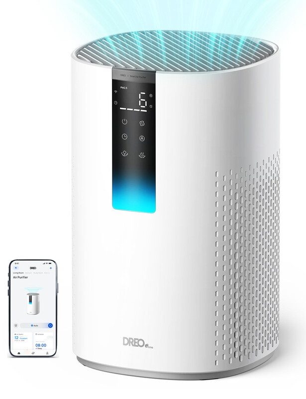 DREO Purificateur d’Air pour Maison jusqu’à 82 m², Filtre HEPA H13, 885 ft²/h, Contrôle WiFi & Application, Capteur PM2.5 Intelligent, Mode Nuit 22 dB, 4 Vitesses, HAP005S