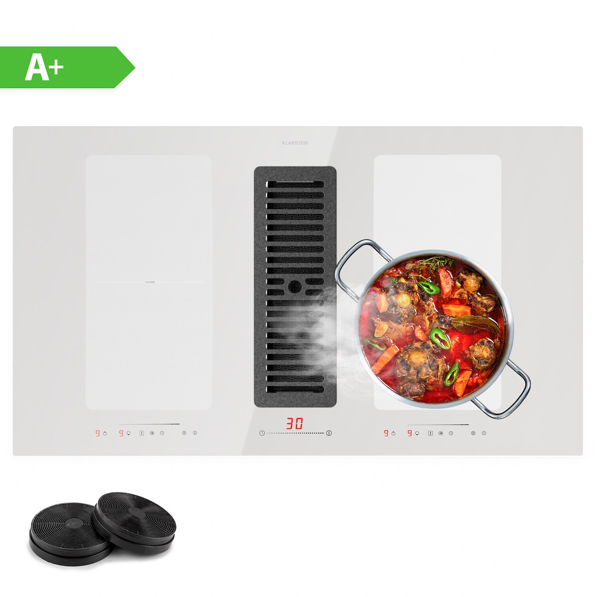 Klarstein Full House 90 Down Air System Induktionsherd + Dunstabzugshaube 477 m³/h EEC A+ Weiß