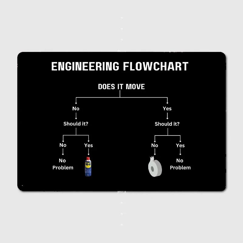 Engineering Flowchart Meme Duct Tape And Wd-40 Metal Plaque Garage Club Wall Plaque Club Home Funny Tin Sign Poster