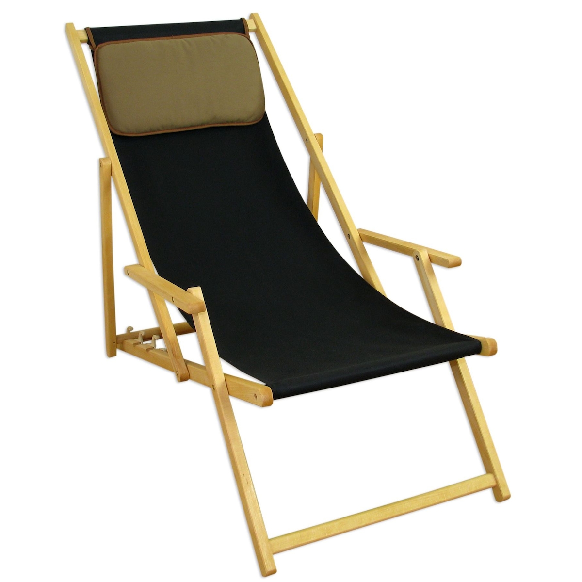 Erst-Holz Liegestuhl schwarz Gartenliege Sonnenliege Kissen Holz Deckchair Buche Gartenmöbel 10-305 N KD