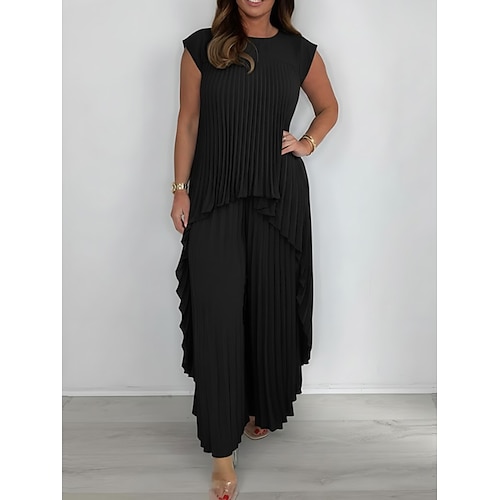 Per donna A zampa Pantaloni Taglio alto Vita alta Lungo Nero Estate