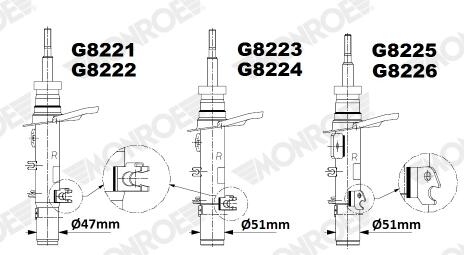 MONROE Stoßdämpfer ORIGINAL (Gas Technology) G8223 vorne rechts Zweirohr für PEUGEOT 9801729680 9804832480