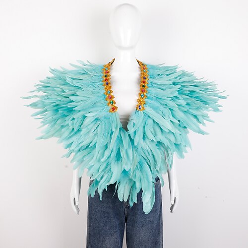 Accessori Samba del Carnevale 2026 Rio Carnevale Cappotto Sciarpa in Piume per Mardi Gras in Viola Verde Oro Poncho in Piume con Collare Gioiello per Donne Costume per Performance al Festival del