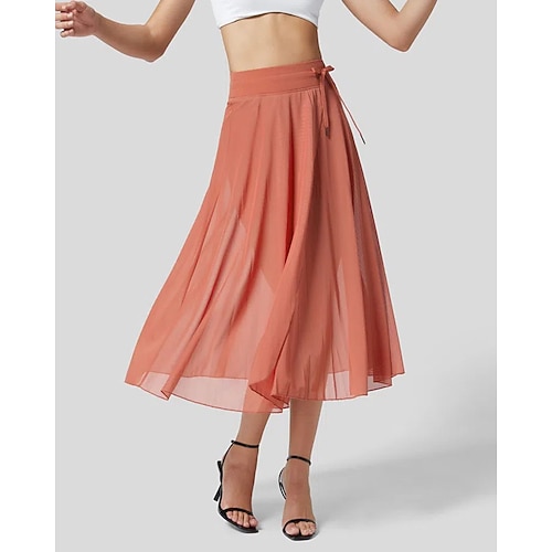 Per donna Gonna Elegante Moda Midi Vita media Gonne Semplice Coulisse Fluido Micro-elastico Streetwear Quotidiano Nero Blu marino Viola Arancione Estate Poliestere