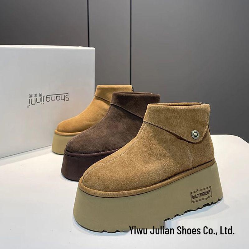 Dames 2025 Herfst/Winter Echt Suède Leer Platformlaarzen met Dikke Zool en Hoge Hak cm