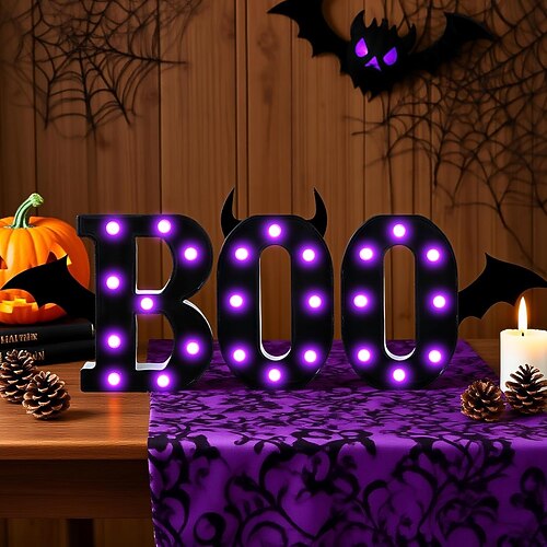 Decorazioni di Halloween per interni - 3 lettere luminose a LED con cartello nero, lettere di Halloween, luci per la casa, interni, cucina, camino, festa, decorazioni da tavola