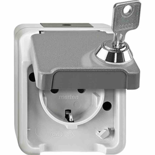 Merten AQUASTAR Steckdose, 1f, lichtgrau, matt, Aufputz, horizontal/vertikal, mit Klappdeckel, IP44, Komplettgehäuse