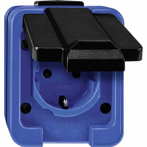 Merten SCHLAGFEST Steckdose, 1f, blau, matt, Aufputz, horizontal/vertikal, mit Klappdeckel, IP44, Komplettgehäuse