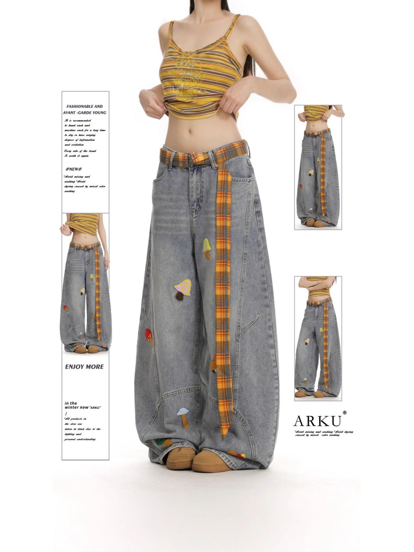 ZYLLO Hip Hop Retro Street Casual Y2k Harajuku Fashion Trend Embroidery Pattern Denim Trousers Straight Wide Leg Pants Unisex cm