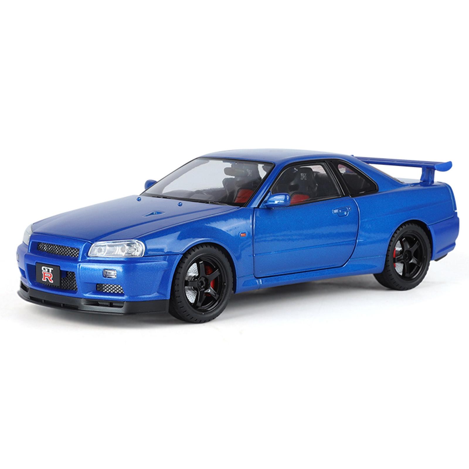 Stor Størrelse 1/18 Skala Nissan GT-R R34 Skyline Legeringsbilmodell Støpt Leke Bil for Gutter JDM Racingbil Leke Gave Samleobjekt Hobby Blå
