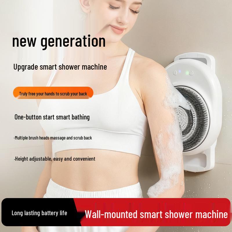 Automatic Wall-Mounted Exfoliating Back Scrubber: Waterproof Massage Bath Brush with Large Head white