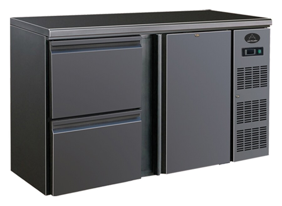 A&S polarny Gastro Barkühler Bar-Kühlschrank schwarz 1 Tür 2 Schubladen 350 l, 1462x513x860 mm 0-10°C