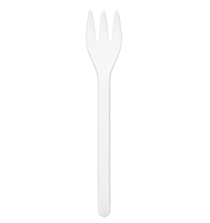MONOUSO - Kunststoff-CPLA Degustations-Mini-Gabel Weiße 100 mm (50 Stück)