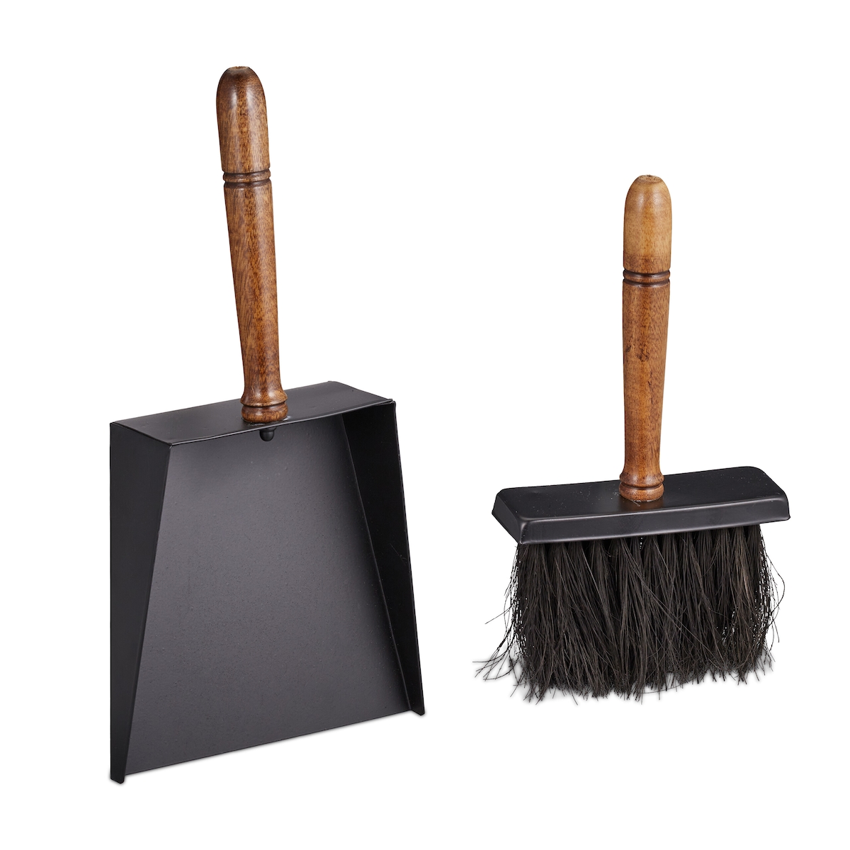 Relaxdays Kehrgarnitur für Kaminofen, Kehrblech & Handfeger, Eisen und Holzgriff, Juteborsten, Kaminset, schwarz/braun