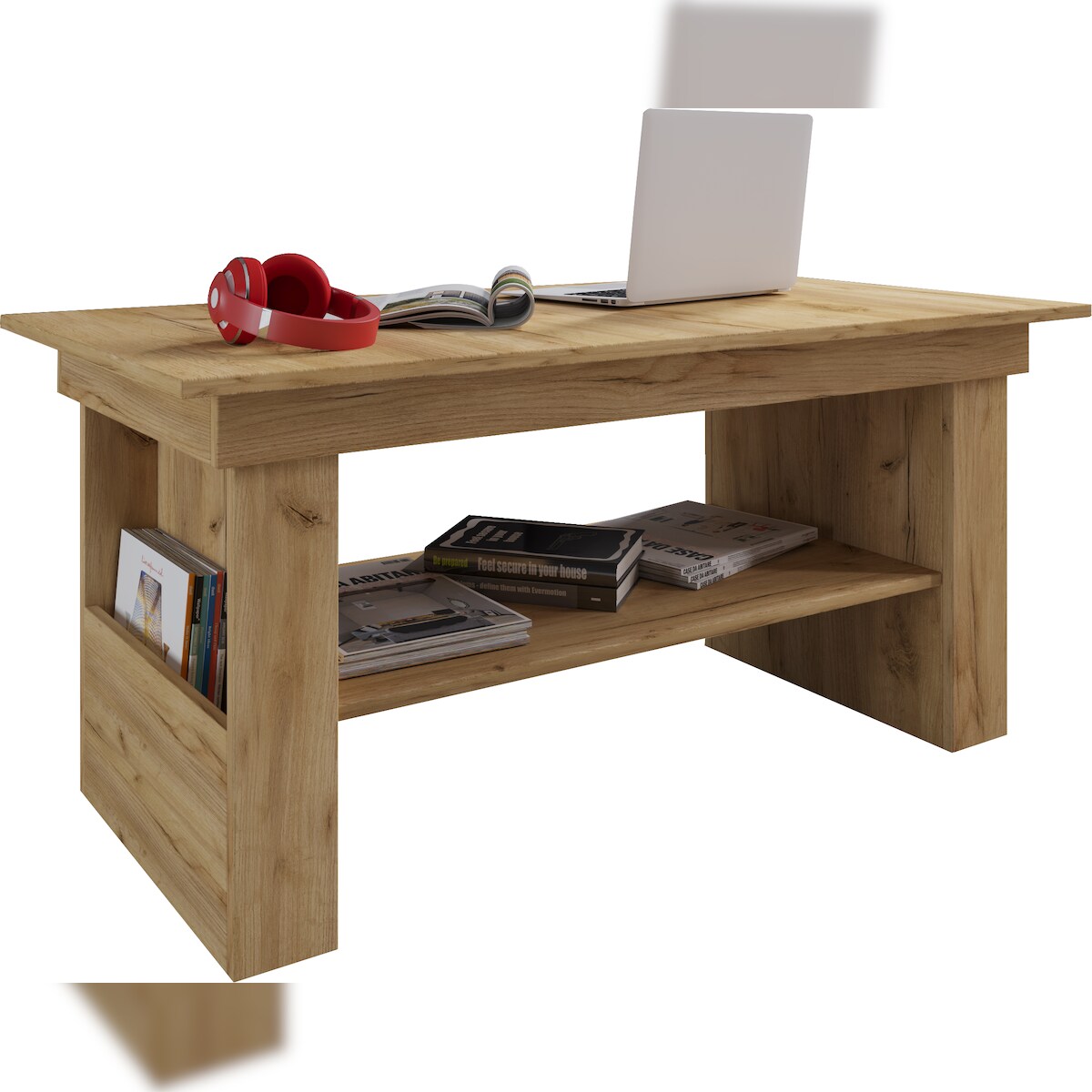 Kobila Couchtisch mit 1 Regal und 2 Fächern Honig-Eiche dekor.