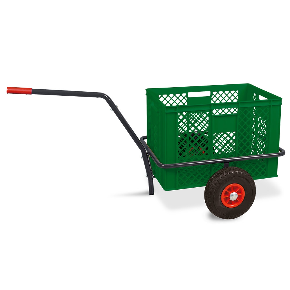BRB Robuster Handwagen in anthrazit, belastbar bis zu 200 kg, mit 41 cm hohem Korb in grün