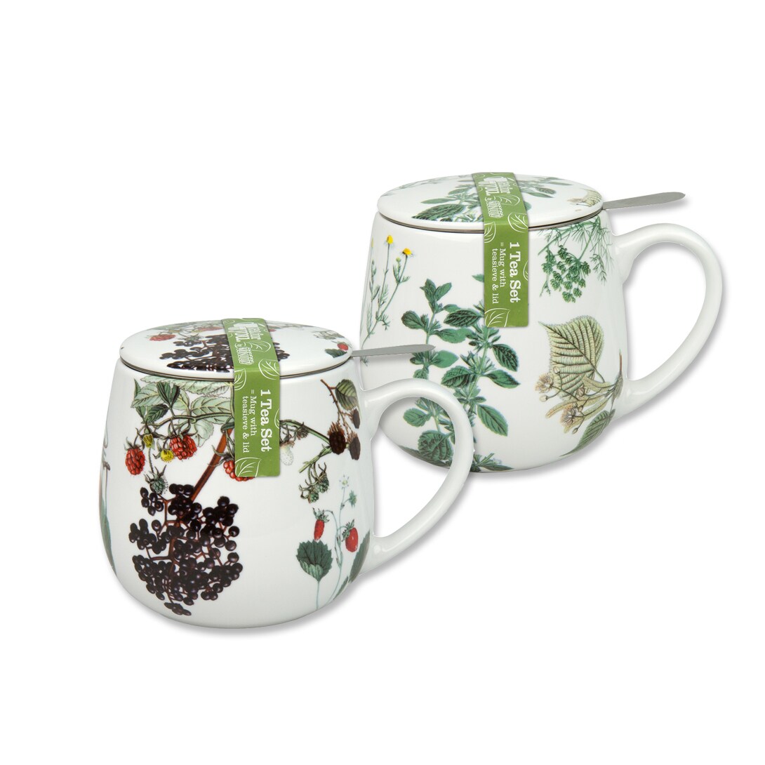 Könitz Porzellan 2er Becher+Siebe+Deckel, Kräuter/Früchte
