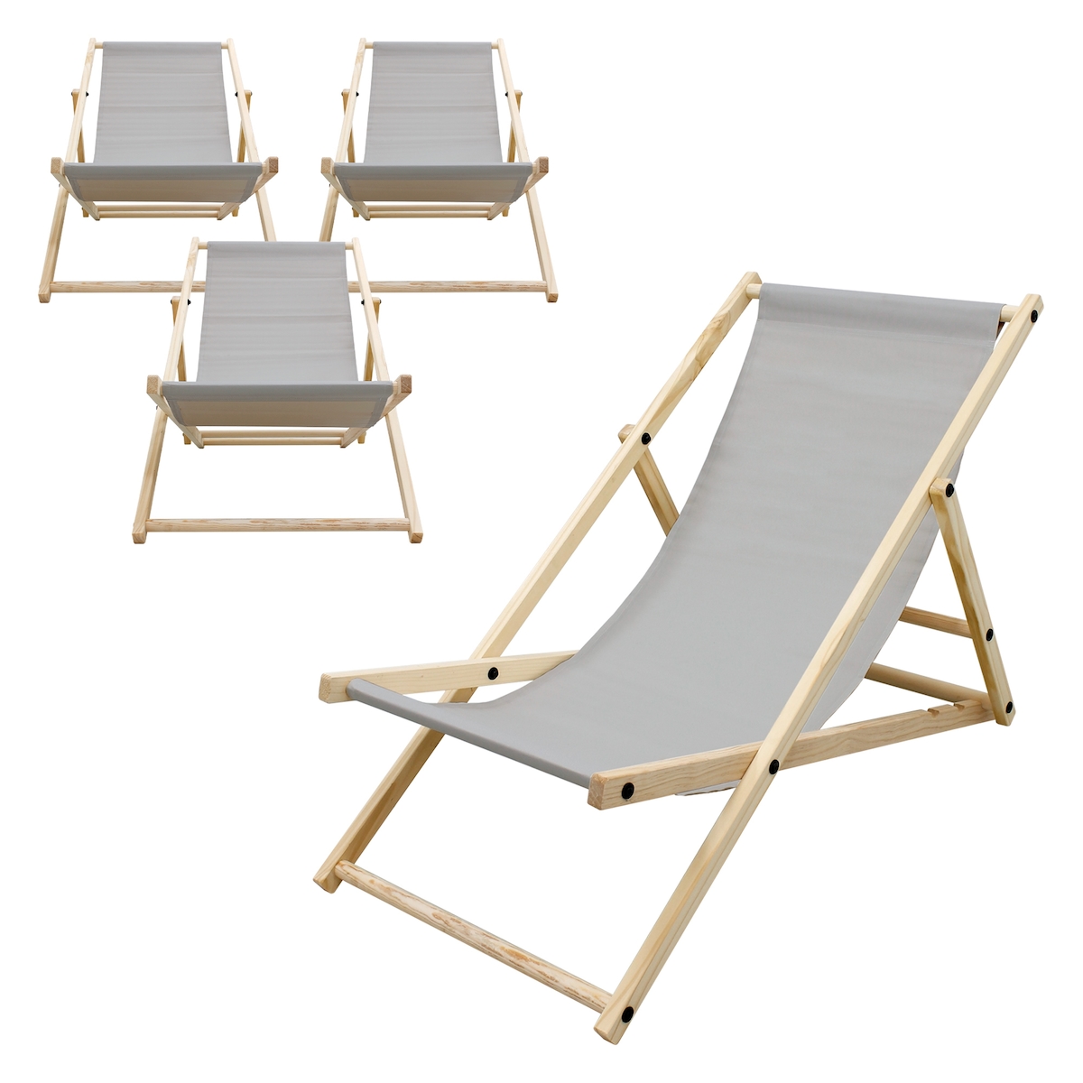 ECD Germany 4er Set Liegestuhl klappbar Hellgrau Holz, verstellbar 3 Positionen bis 120 kg, Sonnenliege Garten Strand