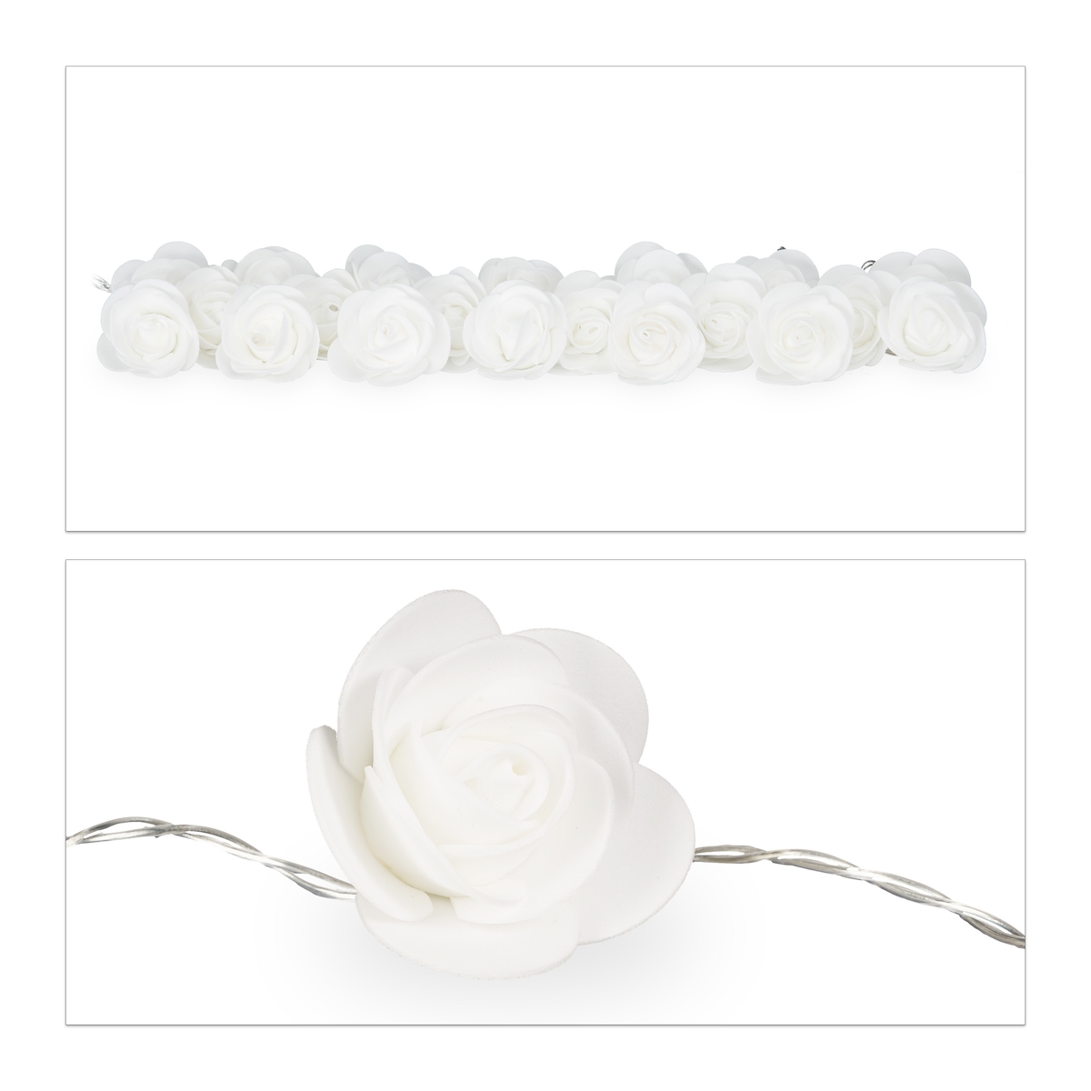 Relaxdays Rosen Lichterkette, 20er LED Lichterkette Batterie, Hochzeit, Verlobung & Valentinstag, warmweiß, Deko, weiß