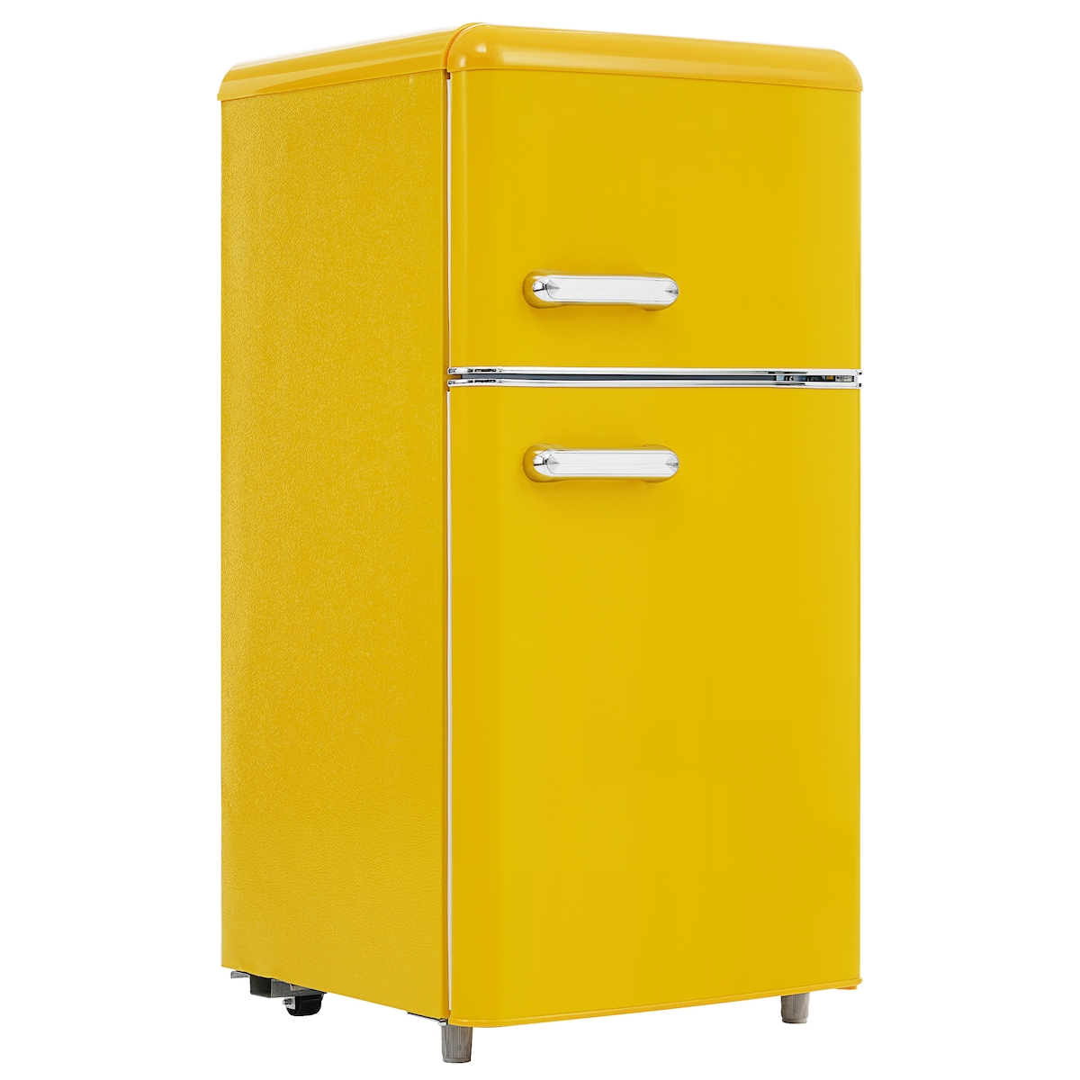 Merax Retro Mini Kühlschrank mit Gefrierfach, 72L, 2 Türen, kompakt für Single, Büro & Hotel Minibar, LED, 120 kWh/Jahr, Gelb