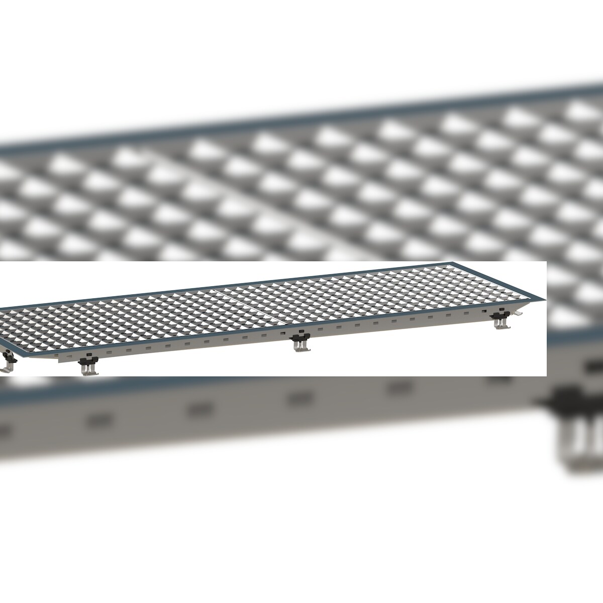 HAGOLA Einlass-Schänke mit Prismen-Lochplatte und Ablauf rechts, 1020 x 32 x 320 (BxHxT)