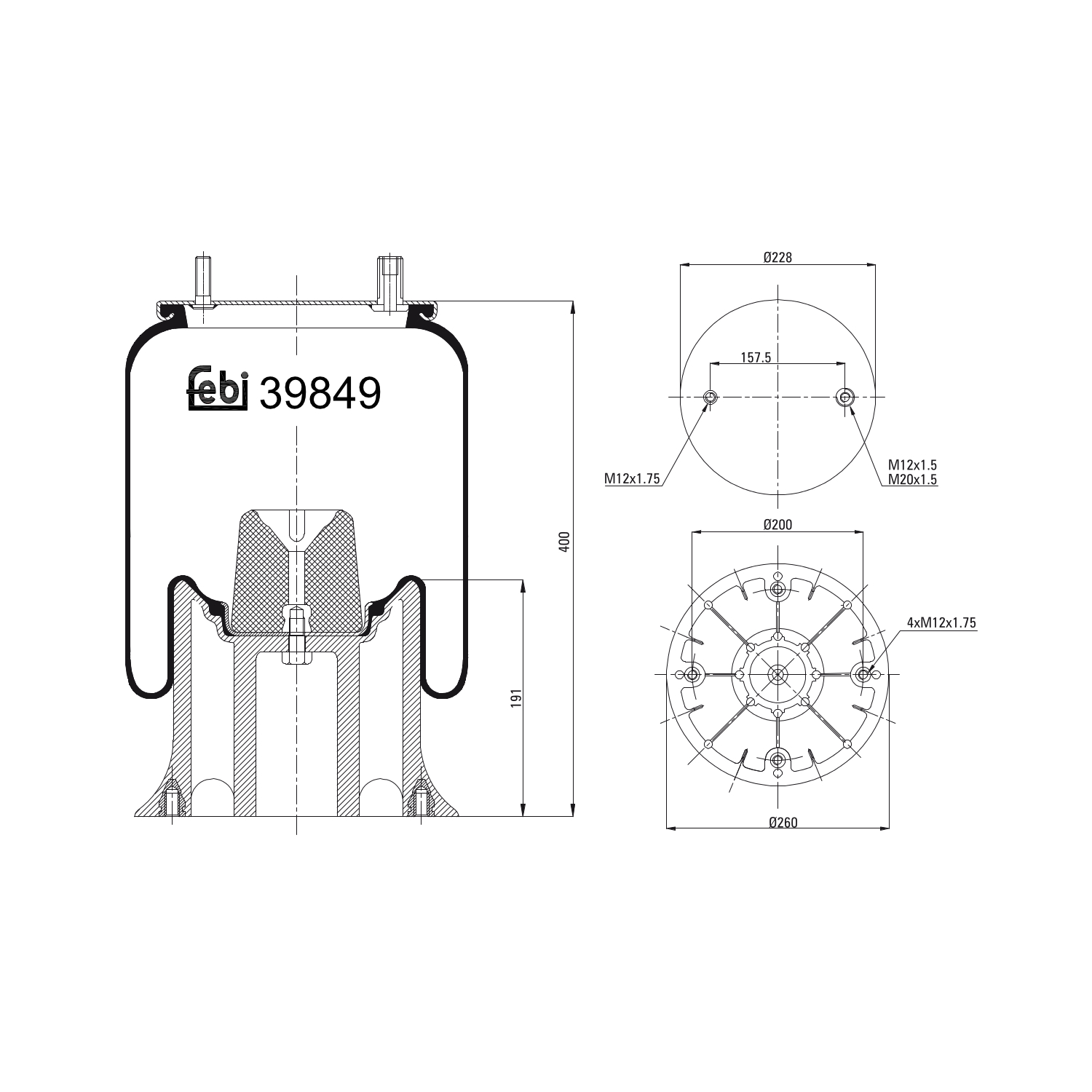 FEBI BILSTEIN Federbalg, Luftfederung 39849 Universal mit Kolben 228mm