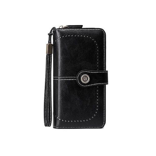 Portafoglio da donna in similpelle con blocco RFID – pochette vintage bifold di grande capacità con tasca portamonete con cerniera per l'uso quotidiano e in viaggio