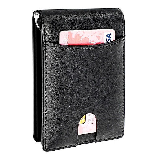 Portafoglio da uomo con cerniera, in vera pelle, antifurto, con blocco RFID, porta carte, portafoglio bifold resistente al magnete, elegante fermasoldi, organizer per carte di credito per uomo