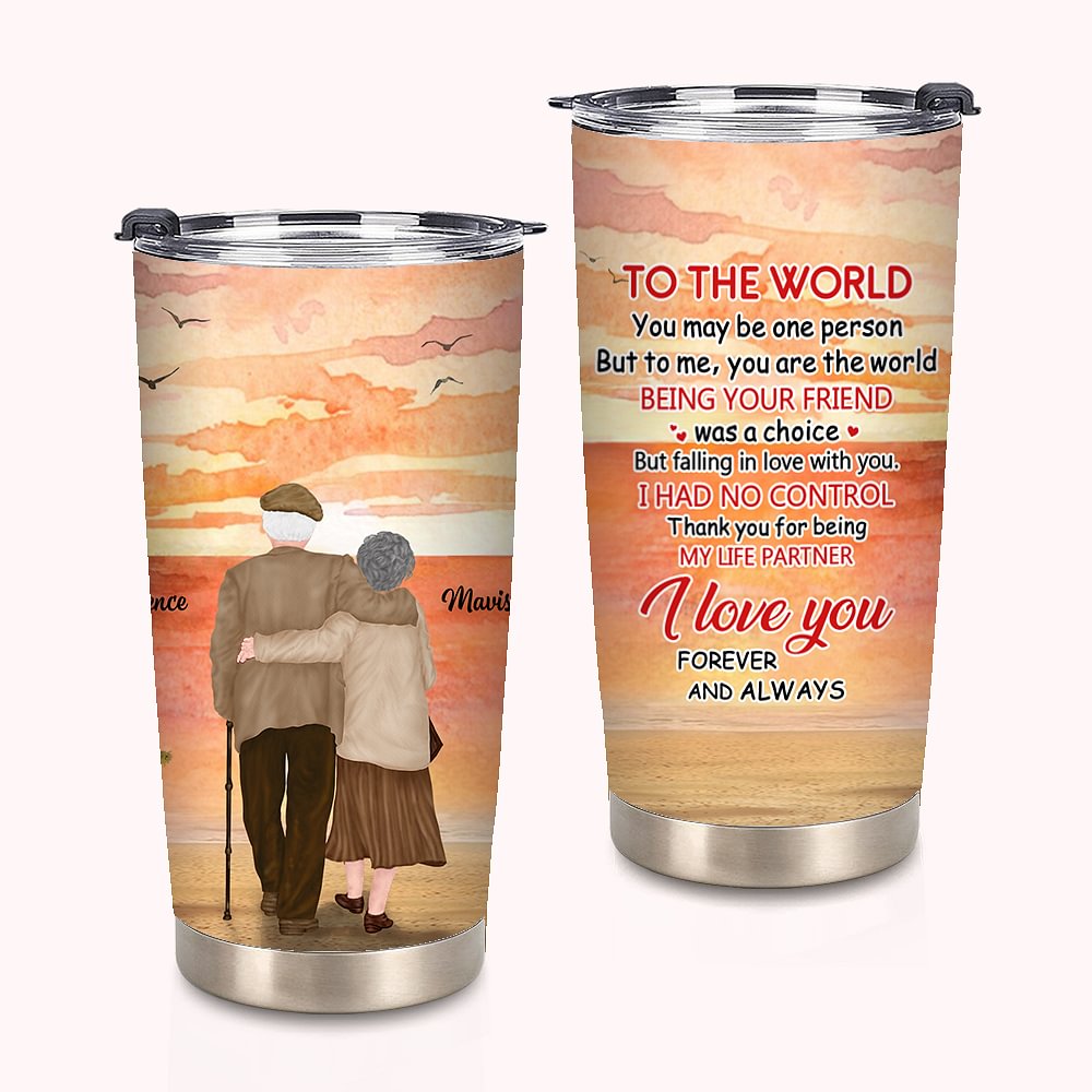 Personalizzato Fall in Love with Each Other Old Couple Sunset 20oz Tumbler Compleanno Uso quotidiano