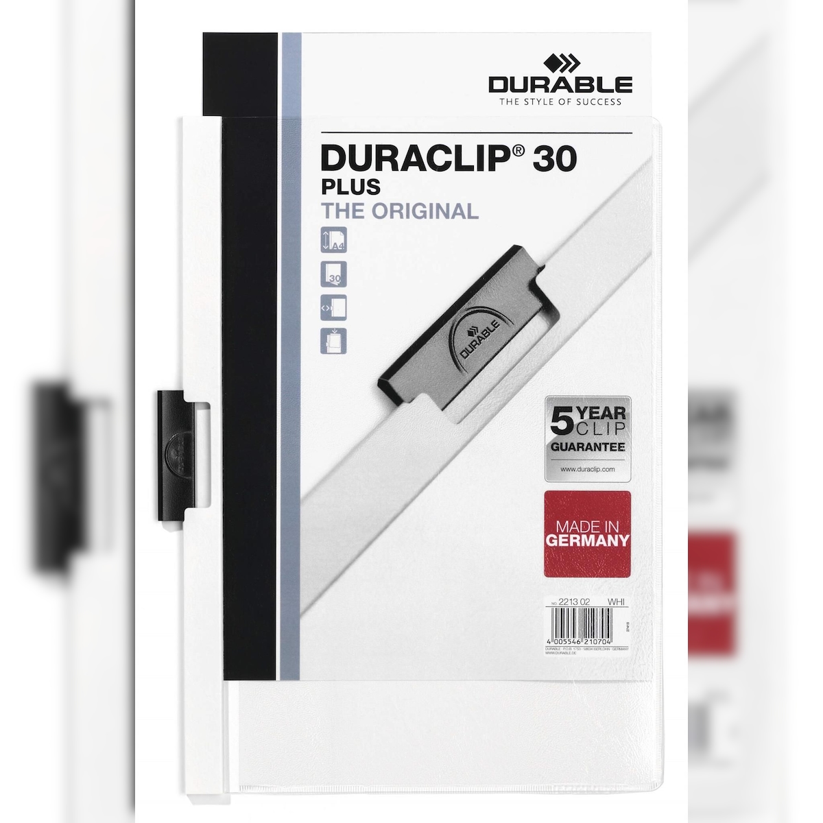Durable 2213 02 Klemm-Mappe DURACLIP® 30 PLUS - A4, weiß