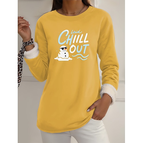 Felpa con fodera in pile da donna, pigiama, sì, ho freddo, lettera, streetwear, casual, manica lunga, girocollo, regular, per le feste, per uscire, stampa, nero, rosso, arancione, verde, grigio scuro