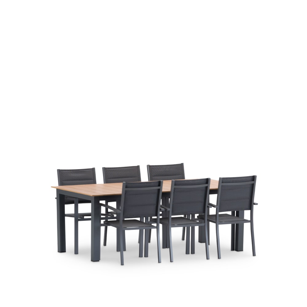 Eckbankgruppe OTTO HOME "Stevian", anthrazite, anthrazite,, Struktur (100% Polyester), Bank Recamiere rechts, FSC-zertifizierter Holzwerkstoff, Keramik, Metall, Polyester, Polywood, Sitzmöbel-Sets, Eckbankgruppe, Holz, Strukturstoffbezug, Freischwingerstü