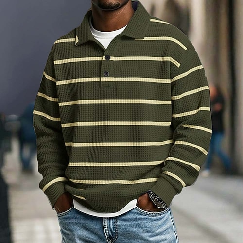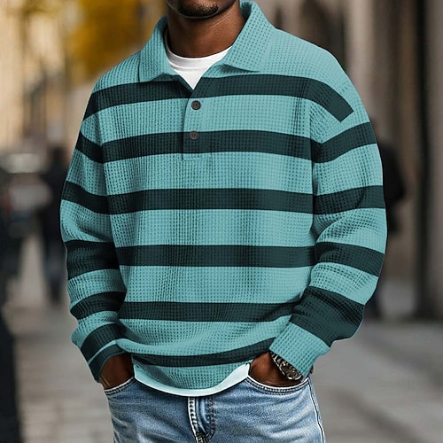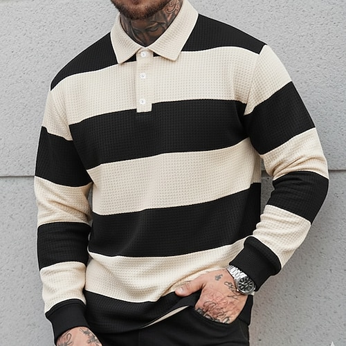 Per uomo Strisce orizzontali Magliette Polo a Nido d'Ape Polo da rugby Testurizzato Manica Lunga Magliette polo Bavero Abbigliamento Sportivo Casual Scuola Athleisure Abbigliamento quotidiano Stampa