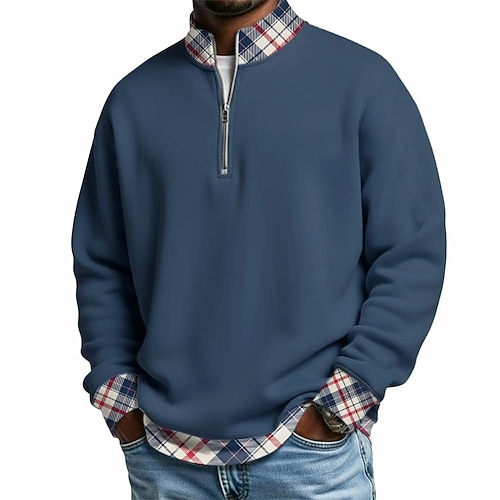 Per uomo Plaid Magliette Polo a Nido d'Ape Polo con zip Manica Lunga Magliette polo Colletto alla coreana Casual Scuola Athleisure Ferie Abbigliamento quotidiano Stampa 3D Polo con cerniera a un
