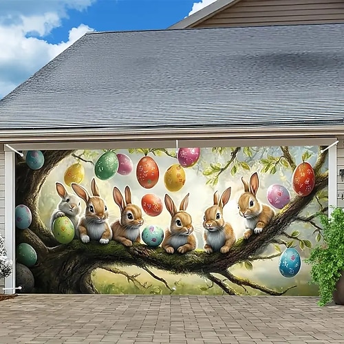 Decorazioni per porte copertura per porta del garage uova di coniglio bandiera esterna grande sfondo per decorazioni per porte del garage per le festività decorazioni per muri di casa