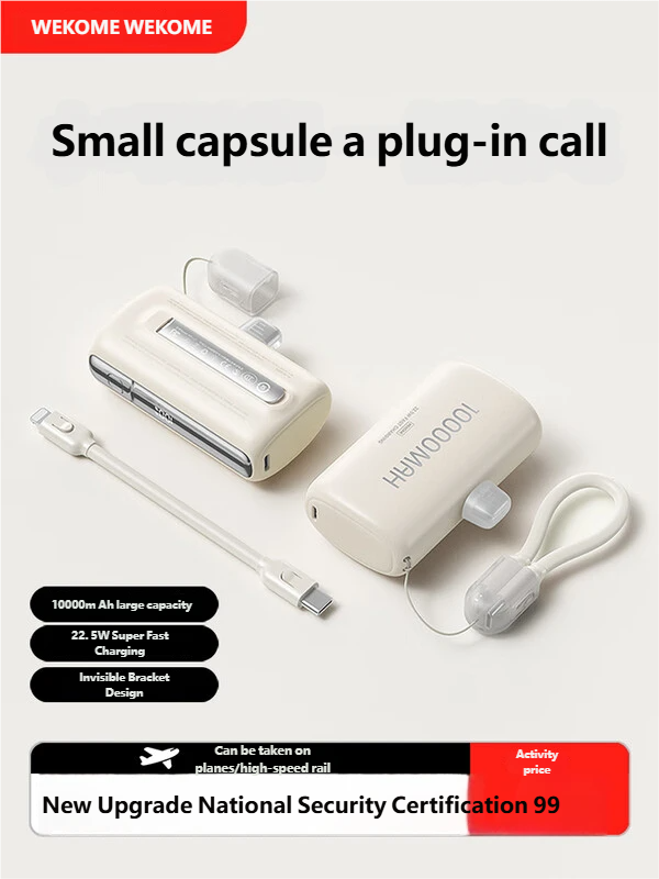 WEKOME Linglong 22.5W Super Fast Charging Portable Power Bank 10000mAh WP-113 Beige, Suitable for Apple, Huawei, Samsung, and Xiaomi Phones