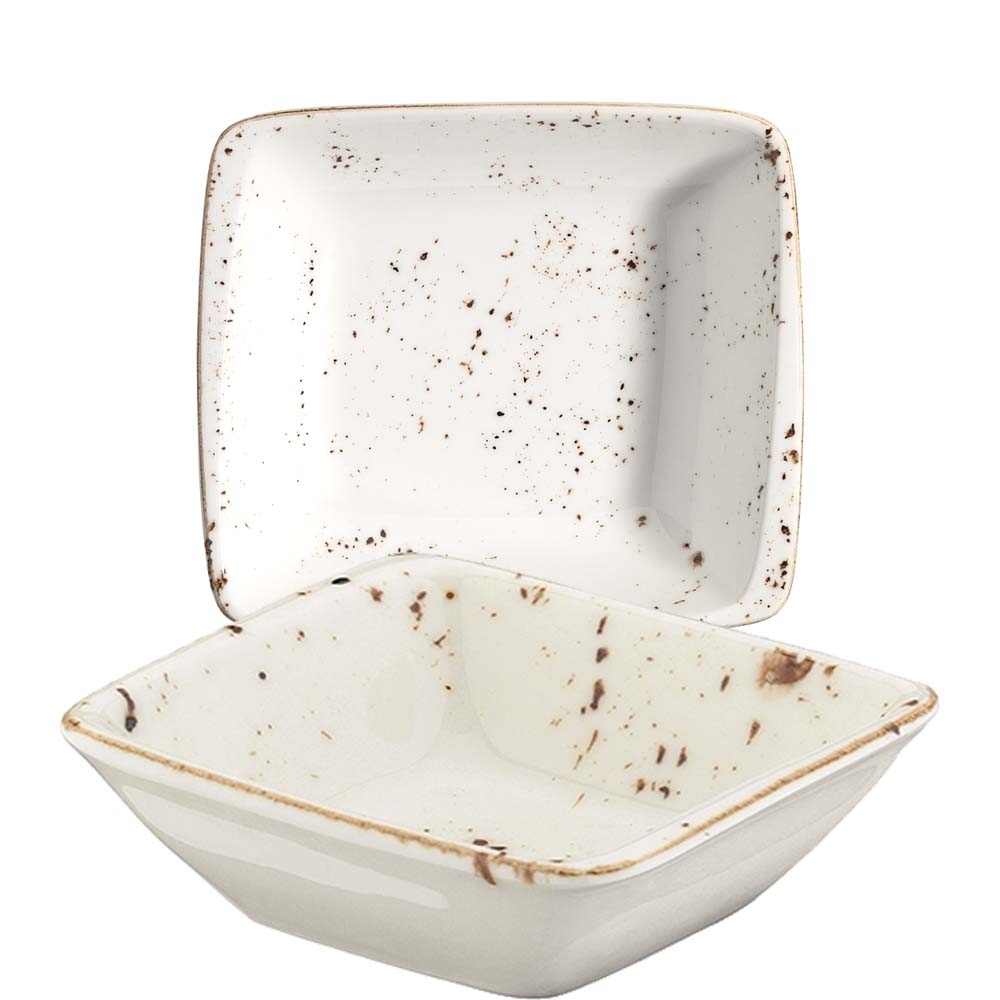 6x Bonna Grain Moove Vintage Retro Schälchen quadratisch 8x8,5cm 9cl 3cm tief Weiß Creme Braun Porzellan GRAMOV10KS Bowl Desser Snack Geschirr