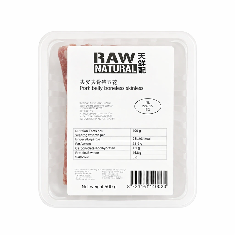 Raw Natural Varkensbuik Zonder Bot Zonder Huid - 500 g