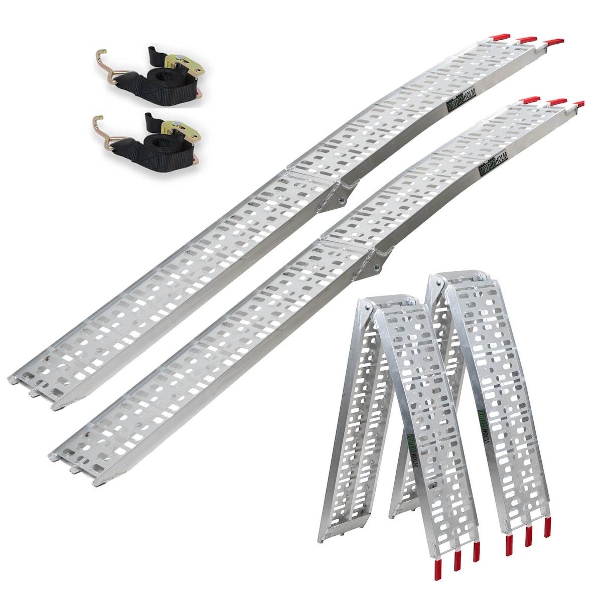 Baumarktplus TRUTZHOLM 2 x Auffahrrampen klappbar 228 cm Traglast 680 kg Alu oliv gelocht Rampen Motorradrampen